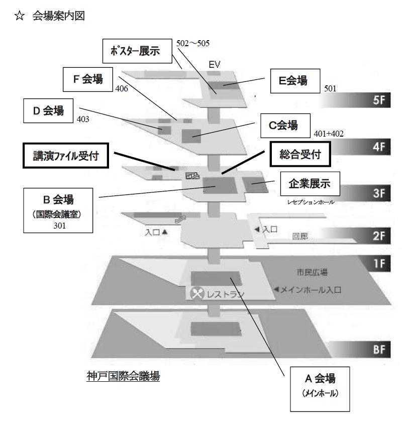 神戸国際会議場 (http://kobe-cc.jp/) 〒650-0046 神戸市中央区港島中町6-9-1 会場へのアクセスはこちらをご覧ください。また会場案内図はこちらです。 |